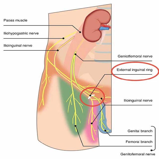 It was found that the client had congestion in the Inguinal canal where the nerve inside the ring was compressed which leads to the numbness and feeling of fullness with discomfort.